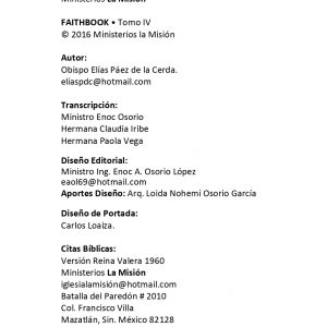 Este cuarto tomo de FaithBook emite olor a ovejas. El Pastor Elías Páez (Aunque es Obispo señalo su investidura pastoral), escribe lecciones desde sus experiencias y diario quehacer pastoral; para nutrir los corazones de los miembros con visión y propósito.